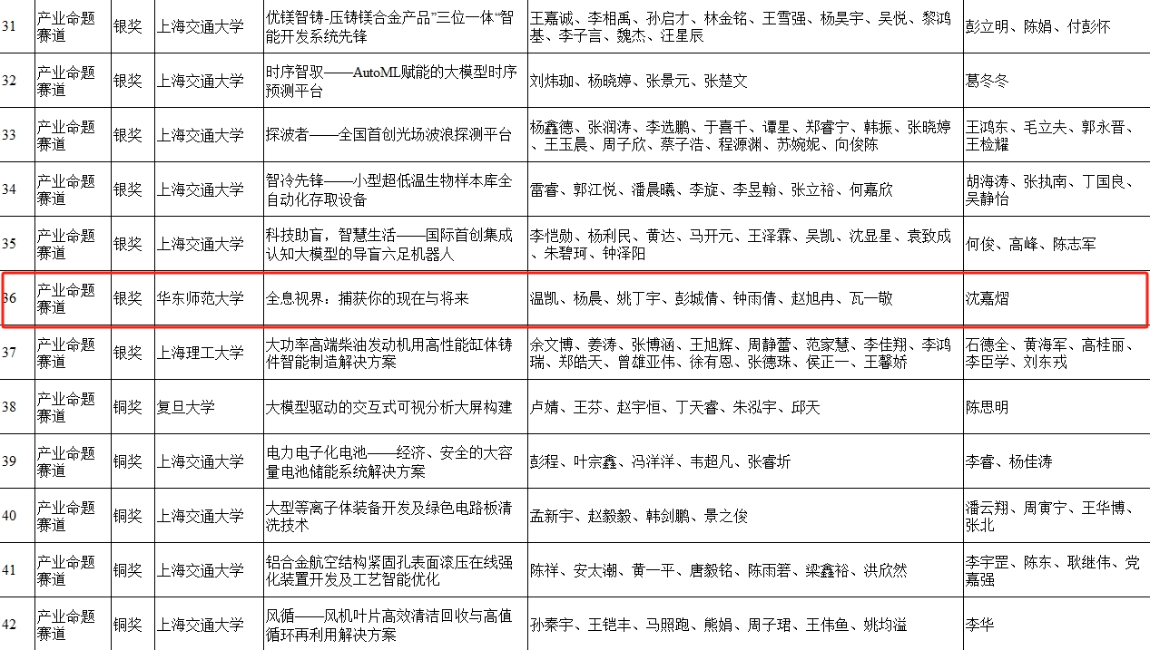 近日,上海教育委员会公布《中国国际大学生创新大赛2024(上海赛区)获奖名单》,ag亚游 沈嘉熠教授指导的项目《全息视界:捕捉你的现在与将来》获得了上海市银奖,实现了ag亚游 在双创赛事中的又一次突破。