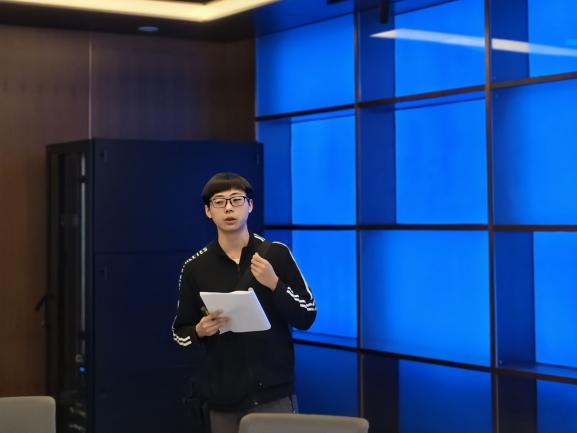金子晋同学汇报创新训练培育项目“对话与共融:基于马克思主义语言哲学的国际传播叙事路径探究——以榕江‘村超’为实例”的中期研究进展。