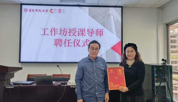 出版学院执行院长季桂保教授,为博纳影业影视制作副总经理、博纳影业AIGMS制作中心负责人、资深制片人曲吉小江女士颁授工作坊导师聘书。