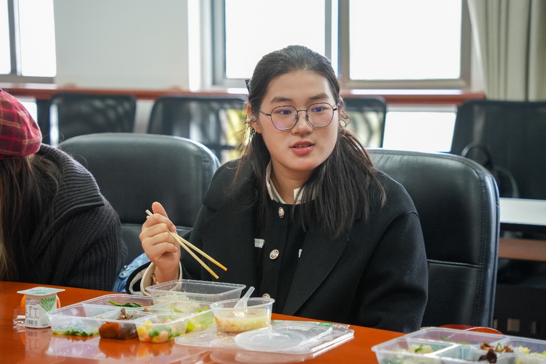 11月22日中午,ag亚游 院长午餐会本科生新生专场在211会议室进行。ag亚游 党委书记朱文佳、党委副书记兼副院长杜彬彬、副院长于晶、本科生辅导员张炜帆与2024级本科各专业的同学们进行了面对面交流,就学习、生活、未来展望等方面展开深入探讨。