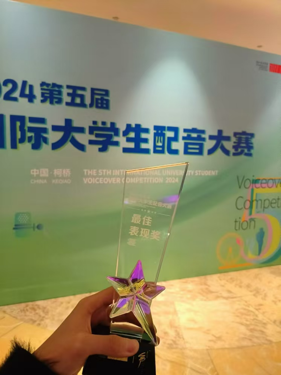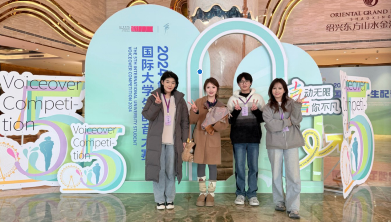 11月21-24日,由中国高等院校影视学会指导,浙江传媒学院和爱奇艺联合主办的2024第五届国际大学生配音大赛暨柯桥多巴胺鉴湖嘉年华在浙江省绍兴市柯桥区隆重举行。大赛分设广告片组、纪录片组、动漫组、影视组、国际组五大赛道,涵盖线上初赛和线下半决赛、总决赛阶段,海内外配音艺术大师虹云、童自荣、刘家祯、刘纪宏、晏积瑄、刘忠虎、李景唐、周扬、黄莺、ALAN DUAN等配音领域著名嘉宾出席开幕式并担任评委。最终,我院播音与主持艺术专业2022级学生高育格同学凭借现场配音作品《我叫王大锤》在影视配音赛道全国总决赛中荣获一等奖及“最佳表现奖”,华东师范大学荣获“最佳组织奖”。