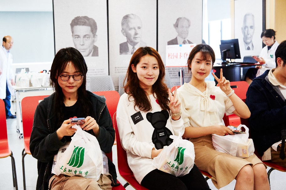 同学们一来到四楼入口,便能收到校医院的爱心补给。采血区,医护人员一边安抚同学的紧张情绪,一边有条不紊地进行采血。同学们彼此鼓励,气氛轻松有爱。献血完成后,在志愿者的搀扶下,同学们来到休息区留观并领取献血证。