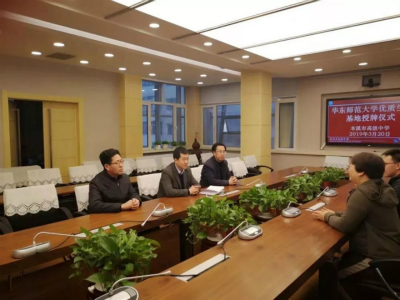 3月26日上午,“华东师范大学优质生源基地”授牌仪式在大连市育明高级中学举行,大连育明高中校长李振权、副校长张敬燕、教务处主任王青林出席了授牌仪式。在授牌仪式前的座谈会上,李振权对招生组一行表示欢迎,介绍了近年来大连地区的教育发展质态和育明高中的人才培养情况。杜彬彬也向中学校方介绍了华东师范大学的校史沿革、办学特色、人才培养等基本情况。