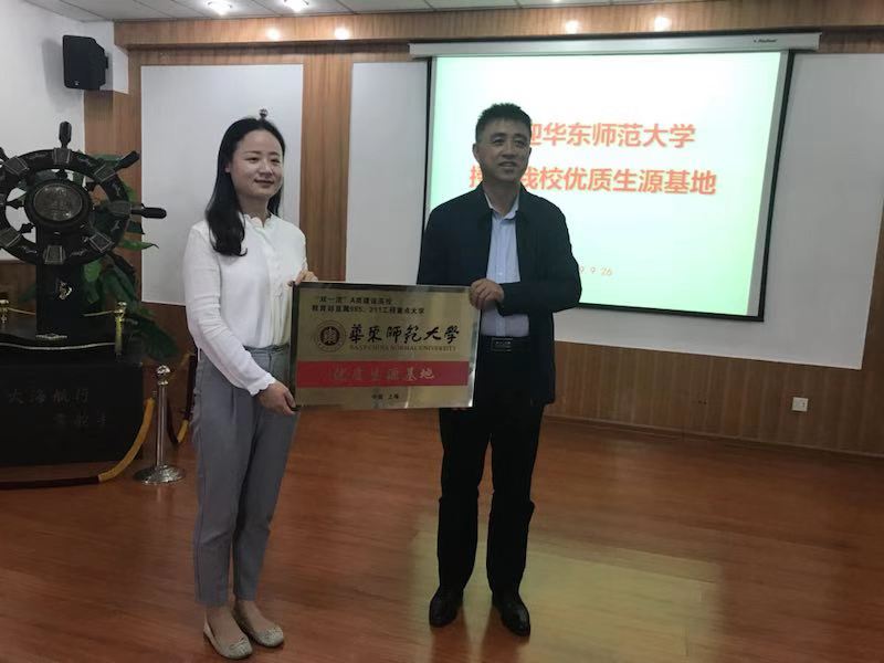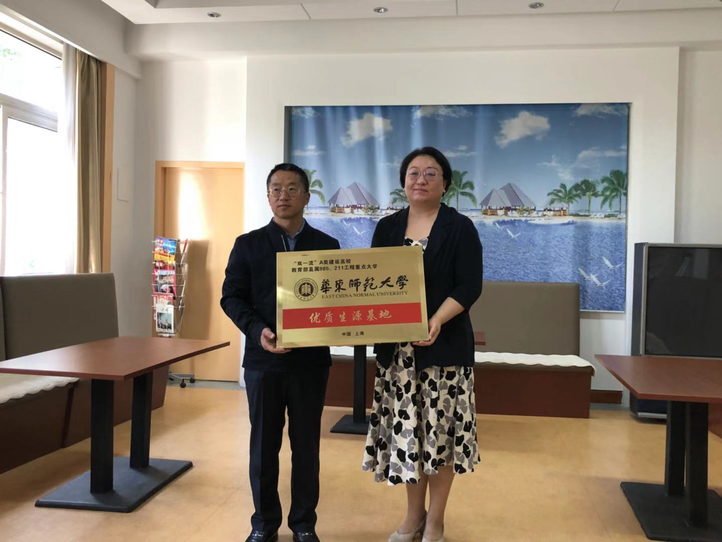2019年9月25日、26日,华东师范大学辽宁招生组一行走访了东北育才高中,抚顺二中,并对两所高中授牌优质生源基地。ag亚游 副院长、副书记杜彬彬、东北育才高中副校长孙永河,教务处主任贾桂华,辽宁招生组成员吉思琪、冯佳怡出席了授牌仪式。