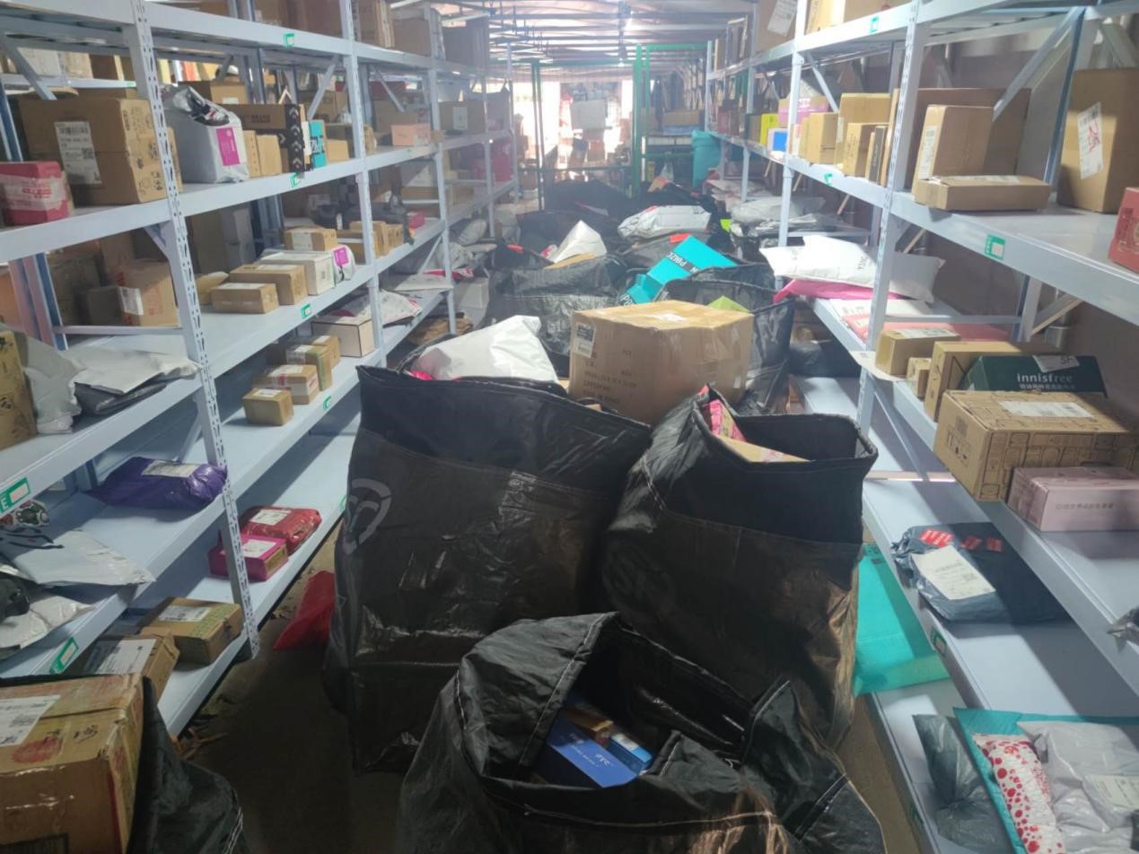 驿站包裹堆积如山,工作人员深夜一点才能下班