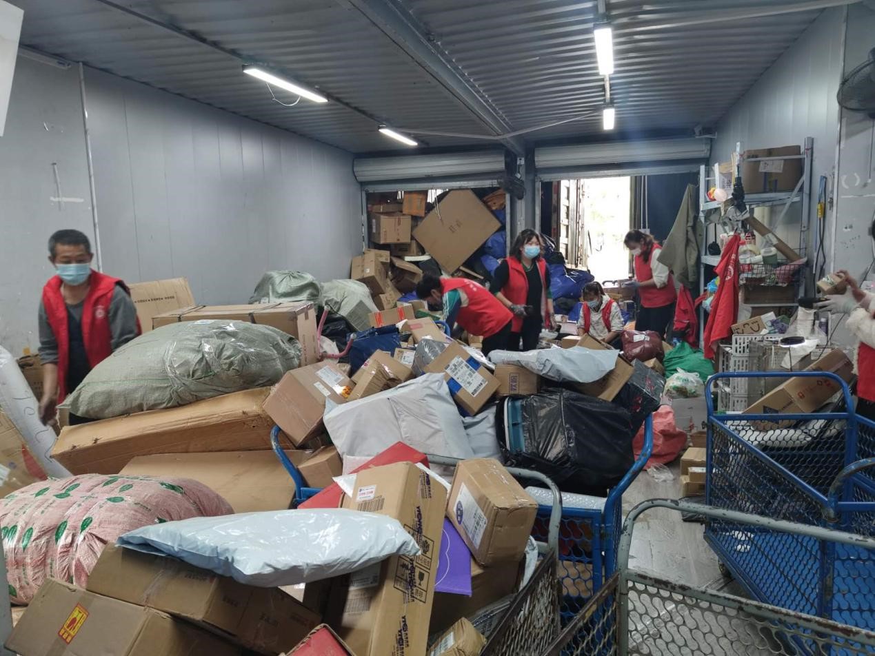 工作人员拆开袋子后,把一件件快递放到一辆小推车上。由于快递货架有限,工作人员只能反复地推着小推车来来回回,瞅准时机上架码货。为了应对快递爆仓的风险,菜鸟驿站增设实习生岗位,并且在10月上旬至11月20号为顺丰和京东快递增设一个集散点,位于本科生公寓12号楼后面。