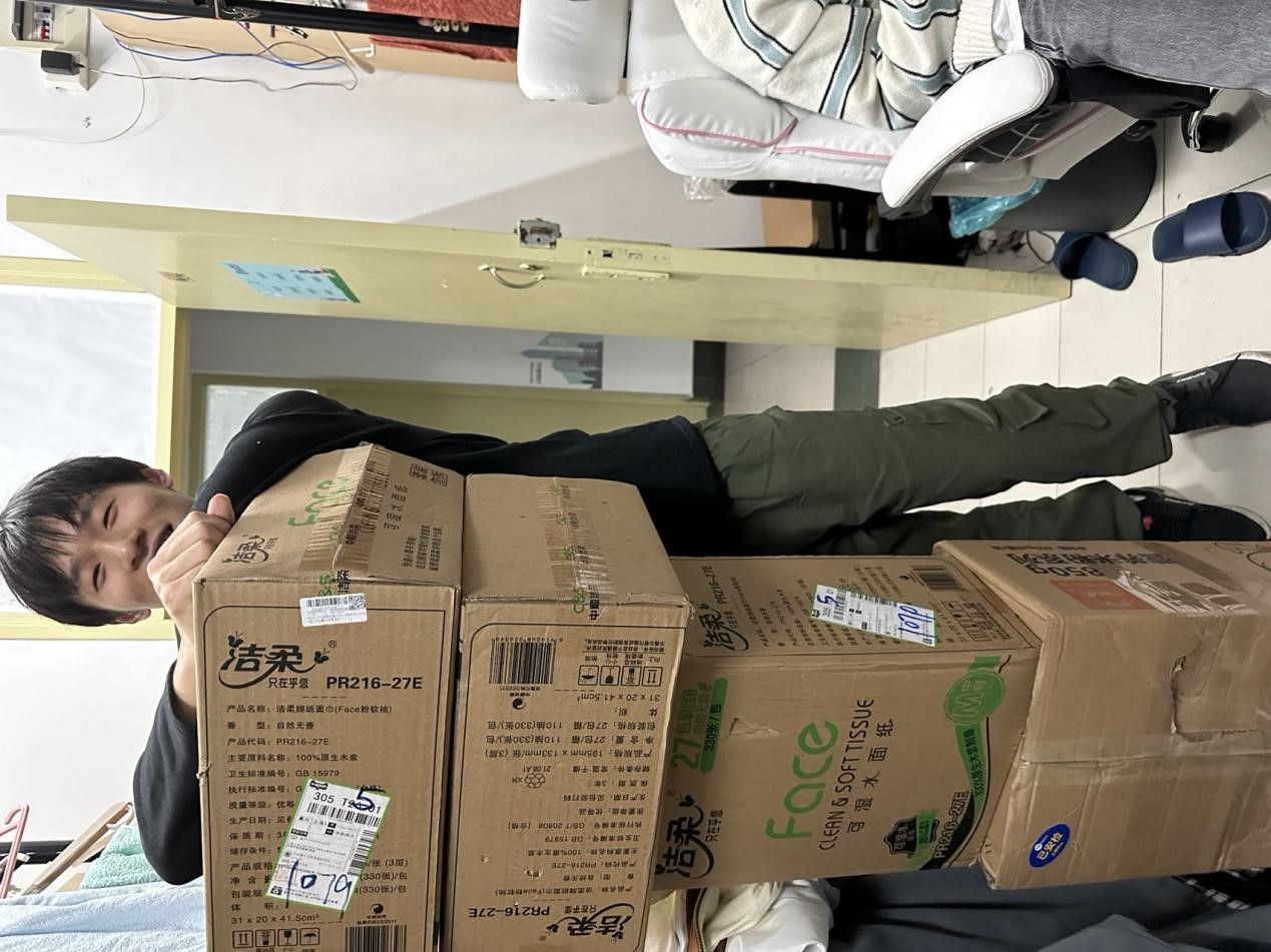 华东师范大学编辑出版专业的何薇同学在双十一期间收到了12件包裹,其中有3箱是大包裹,分别为纸巾、卫生巾和猫粮。在双十一期间批量购买,不仅算出来的单价会比平时低很多,也存在着疫情的影响因素。2022年3月10日至7月初,华东师范大学也经历了长达4个月左右的封控。当时,买纸巾、牙膏这些消耗品需要通过微信程序进行配送,而且许多天才有一次配送的机会。“上半年封控期间,买纸巾、卫生巾这些消耗品真的蛮困难的,所以我会有种焦虑,一定要多囤一点,以备不时之需。”