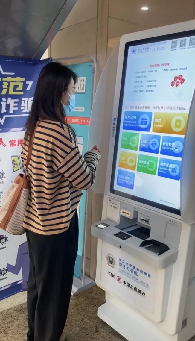 在杭州下沙邵逸夫医院的一台自助服务机前,27岁的小戴正熟练操作机器取号,穿着休闲的暗红色条纹针织上衣和阔腿裤,装扮与一般就诊的病人无异。不同的是,她手上的门诊卡总来自不同的人。她背着1000ml卡通大水杯和一个棕黄色大斜挎包,包里有给病人准备的水、伞、湿巾、口罩,还有一些小零食以预防低血糖。