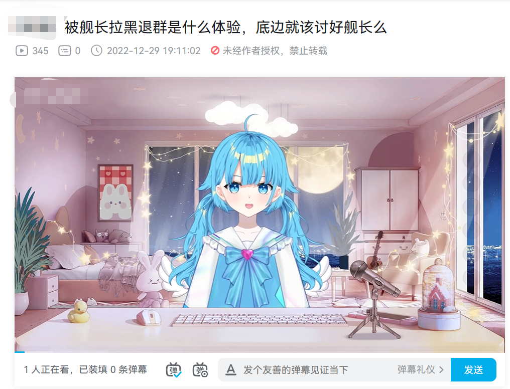 几乎每个主播都见过这样冒犯的问题,尤其是女v。随着粉丝越来越多,打探真实身份的言论也会时不时蹦出来。对于虚拟主播来说,不透露私人信息,是这一行业的明文规定,也是粉丝与主播之间达成的默契共识。不同于真人主播,虚拟主播之所以强调“虚拟”二字,不仅仅是由于它的形式是是由真人扮演二次元形象,还在于三次元的主播真人始终是不可见的,这维持了主播在粉丝心中的虚拟感。“中之人”游走于虚拟和现实之间,一面通过动作捕捉设备实时表演,赋予皮套灵魂,一面又小心地维持着边界,避免暴露私人信息。一旦被“开盒”,虚拟形象的生命周期就将终止,主播也要宣布毕业,从此在互联网上销声匿迹。