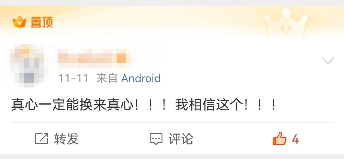 这看似只是直播中的一个小插曲,但下播后,松松按捺不住自己的快乐,将微博置顶博文换成了“真心一定能换来真心!!!我相信这个!!!”