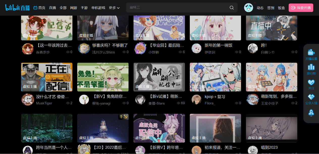 (打开B站直播区,能看见众多籍籍无名的底边小V)