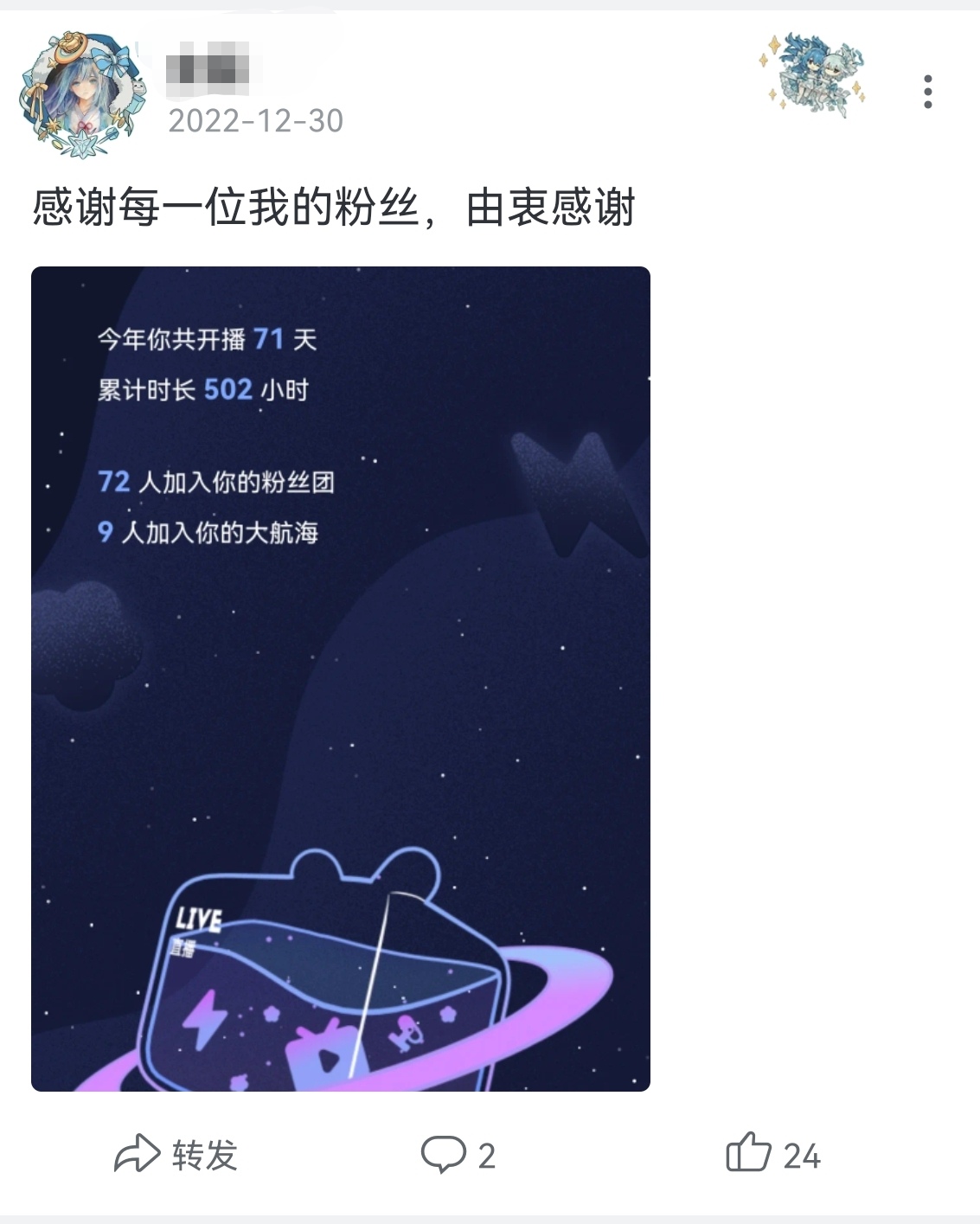 (下播后,松松的微博置顶博文)