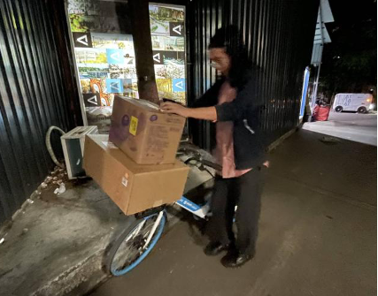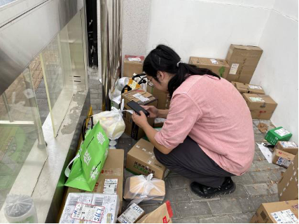 “若子小卖部”群聊人数逐渐上升,需求总量也越来越大。小卖部的经营不得不向流程化、系统化的方向发展——赵哲宇开始规律排班,预留个人学习、用餐、前往菜鸟驿站提取快递的时间,之后定时截单配送。忙碌紧凑的排班意味着赵哲宇在工作时没有多少犹豫的时间,“到点就走”是他恪守的准则。为保证分拣速度、方便拿取货品,他的储物柜门始终是敞开的。为确保配送准时,他会提前在纸条上抄录好代取快递的货架号与订单尾号,在上下午的空闲时段前往菜鸟驿站提前取走同学“预定”的快递,将其堆放在自己的宿舍楼16号楼下,从而能在17:30与21:00的“发车”时刻“下楼即走”。