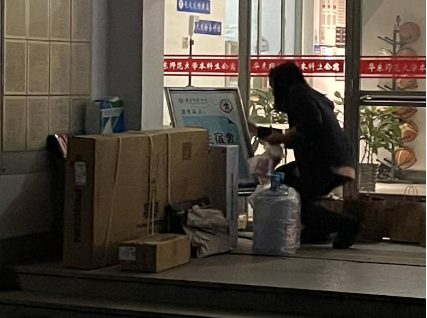 赵哲宇清楚地记得,那天上午10:15,他遇见一位腰背佝偻、头发花白的上海老妇人,独自在校门外守着孙女大大小小的行李箱,她的孙女因为核酸阴性报告尚未被上传而无法出校拿行李。老妇人用一口沪普,苦苦央求他将推车出借,好让孙女少跑几个来回。虽然于心不忍,赵哲宇仍拒绝了她的请求,他必须用推车来搬运,才能在10:20准时开始下一单行李的运送。