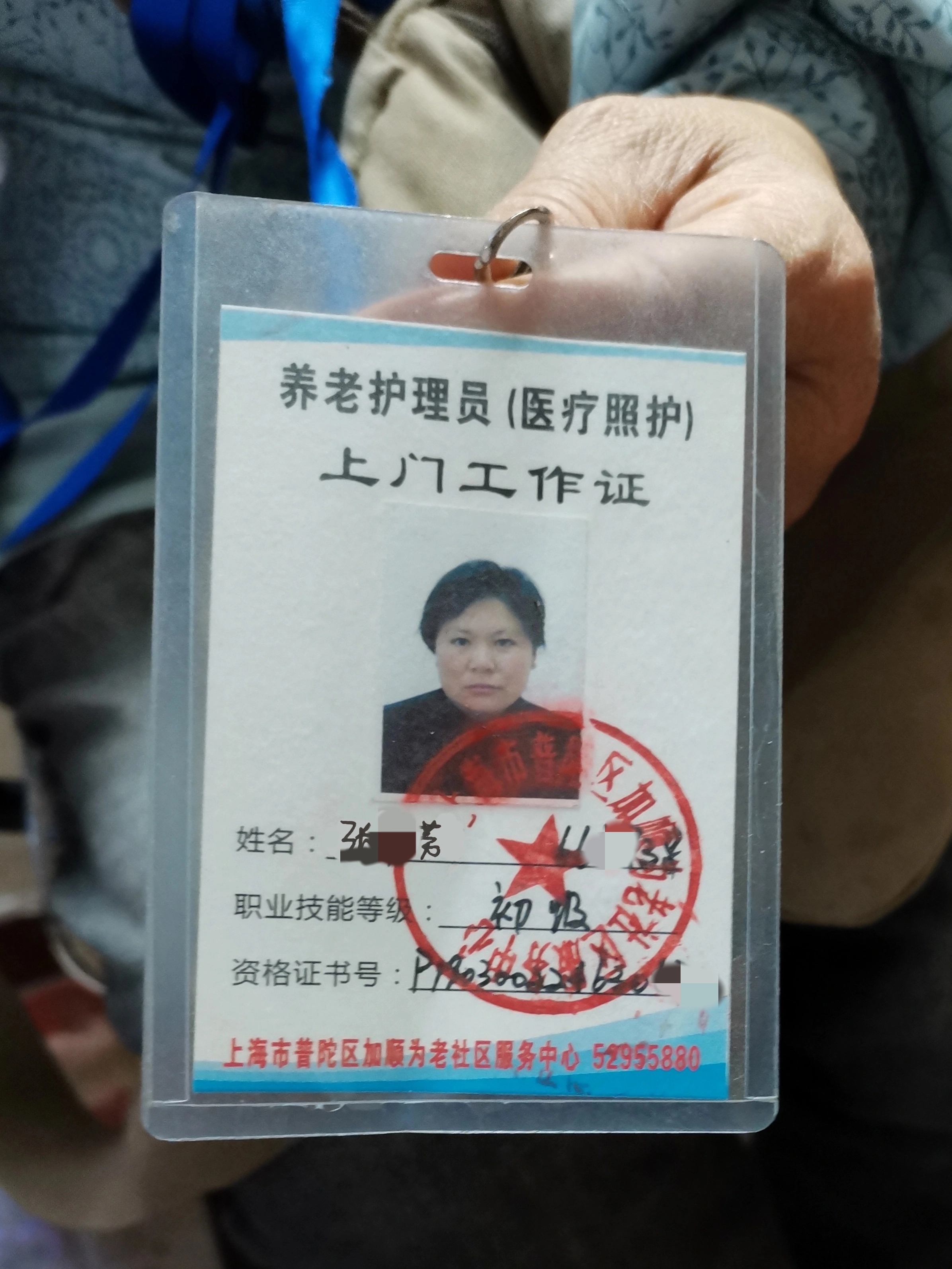 (张慧芳每次上门时需要出示工作证)