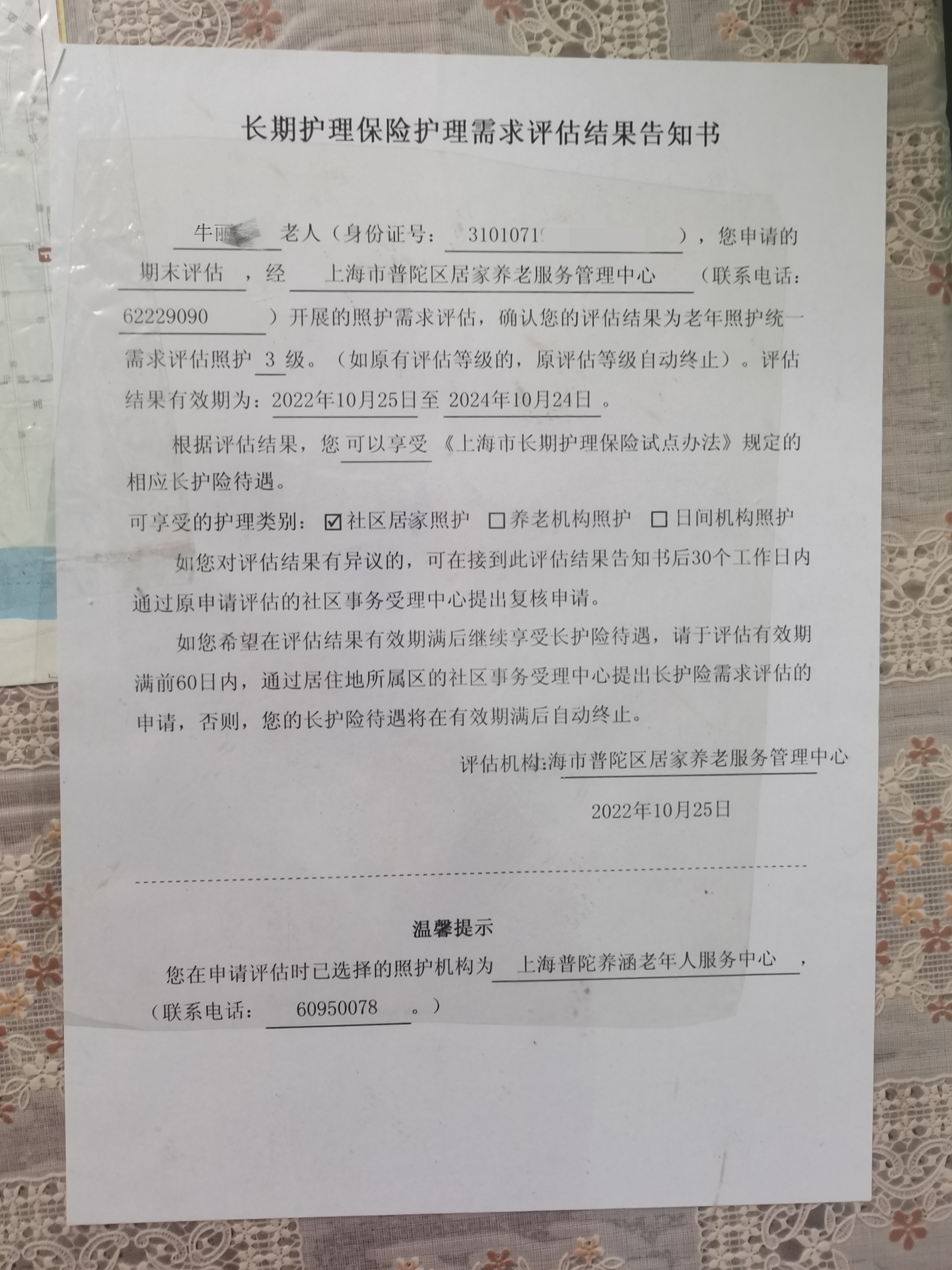 (牛丽华将本次评估结果告知书压在桌垫下)