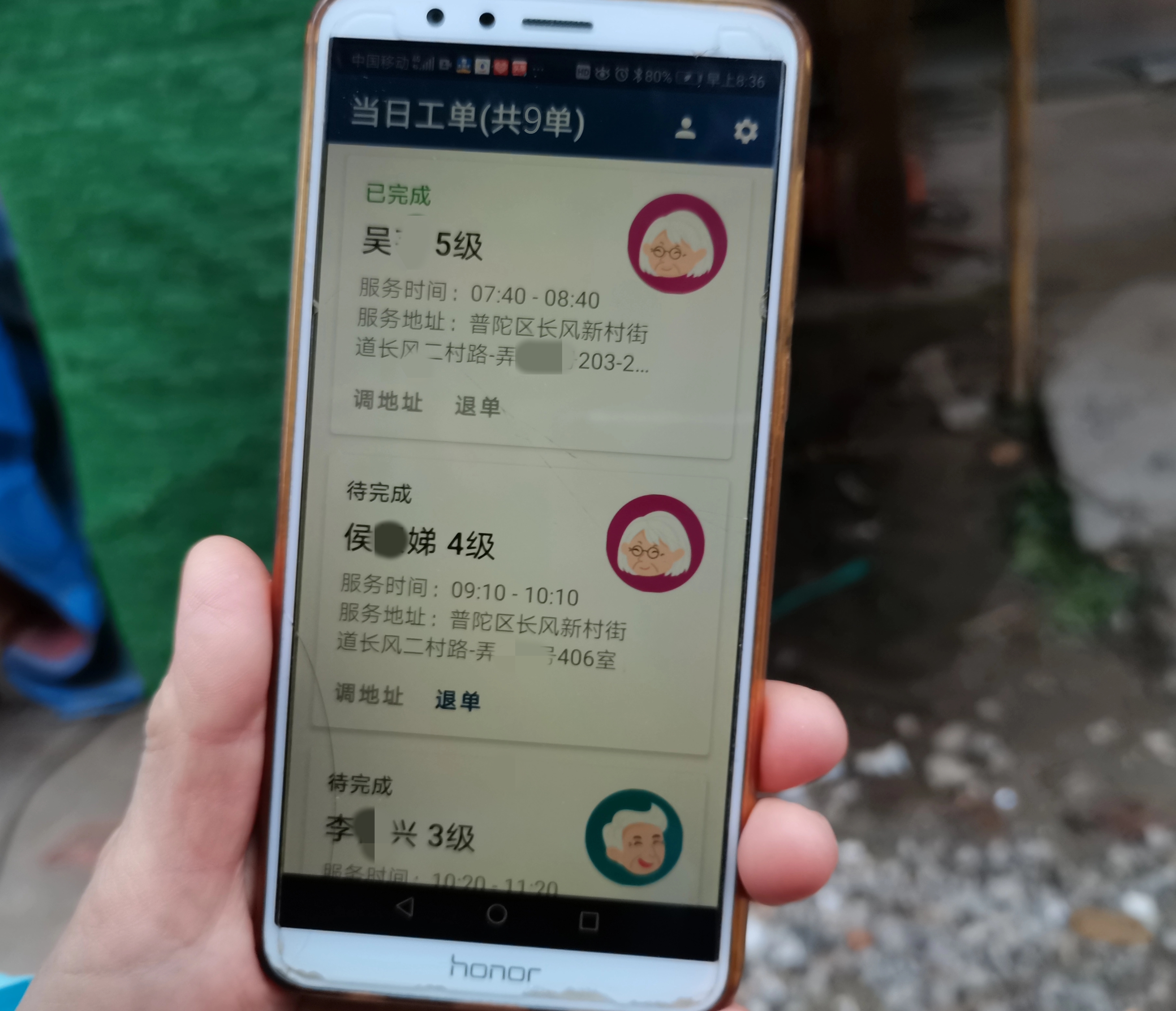 (王秀琴的“太照护”app工单页面截图)