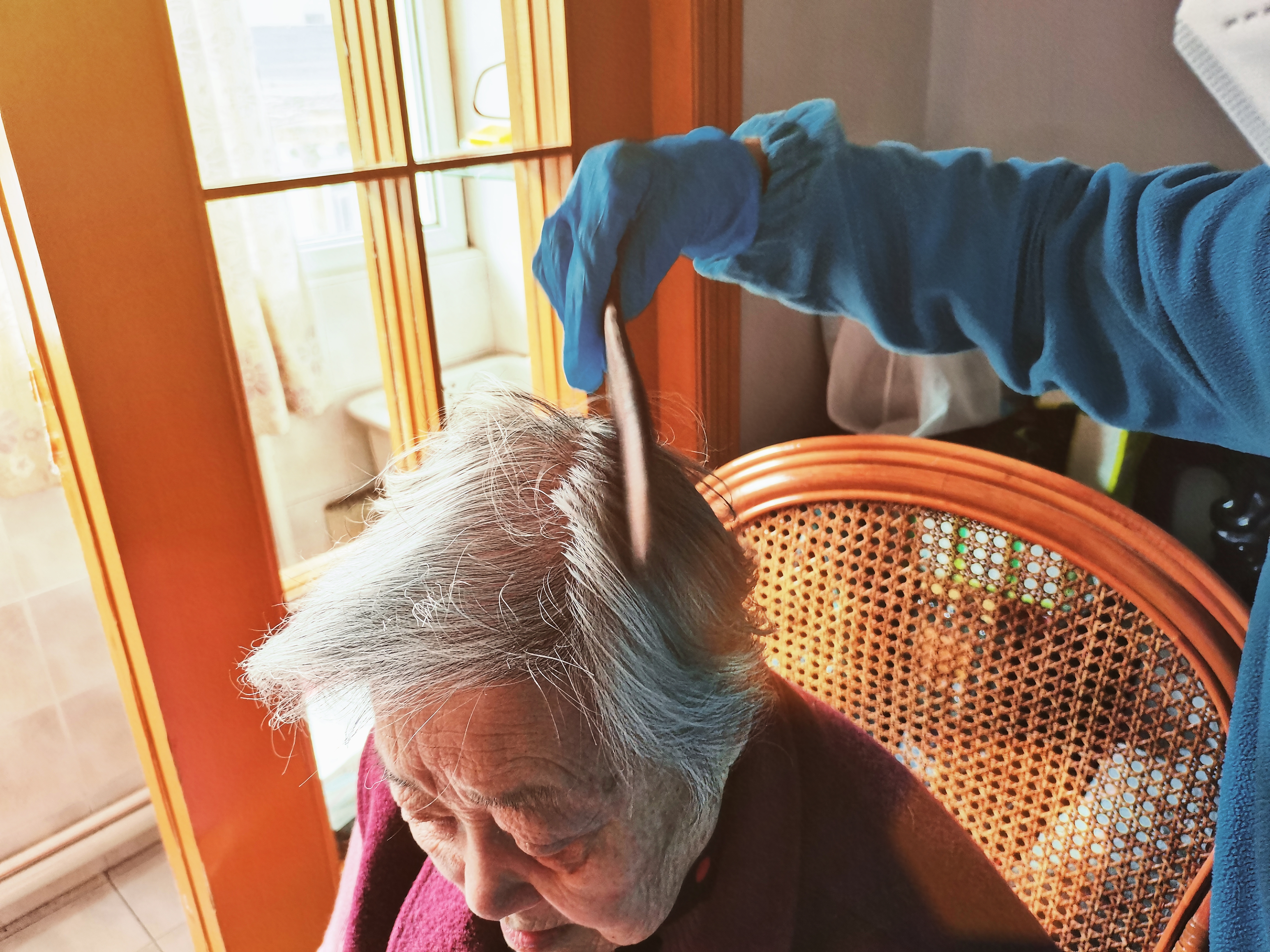 (黄菊芬正在帮阿婆梳头)