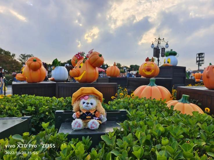 (冬姐带着娃娃“可琦安”在迪士尼乐园拍照)