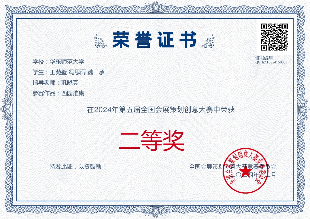 近日,由全国会展策划创意大赛竞赛委员会、上海大学、浙江外国语学院、国际会展学会主办的国家级赛事——第五届全国会展策划创意大赛于2024年11月底正式完成决赛评审,由ag亚游 广播电视学系巩晓亮副教授指导的作品《茶韵流转,图绘新章——探寻《煮茶图》》(参赛人员:阳嘉怡,范祎、吕奕田、刘欣乐)荣获全国一等奖;作品《西园雅集》(参赛人员:王苑壁、冯思雨、魏一承)荣获全国二等奖。巩晓亮副教授凭借其出色的指导能力,荣获优秀指导教师称号。同时,华东师范大学在本次大赛中积极参与、卓越组织,荣获优秀组织院校荣誉。