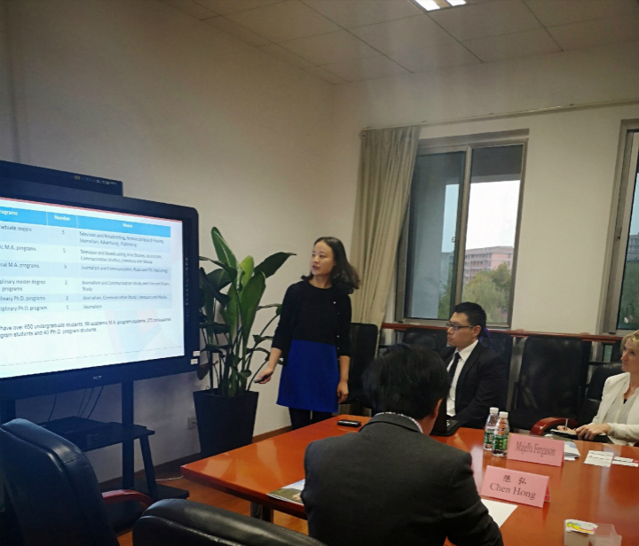 昆士兰大学Heather Zwicker教授首先表示了对于华东师范大学综合实力及国际化程度的肯定,同时也介绍了昆士兰大学的出版、创意写作项目等,并且提出期望今后昆士兰大学的学生能够更多来华东师范大学交流学习。在会议过程中,表达了对于我校学生素质的认可,良好的英语表达沟通能力给她留下了深刻的印象。