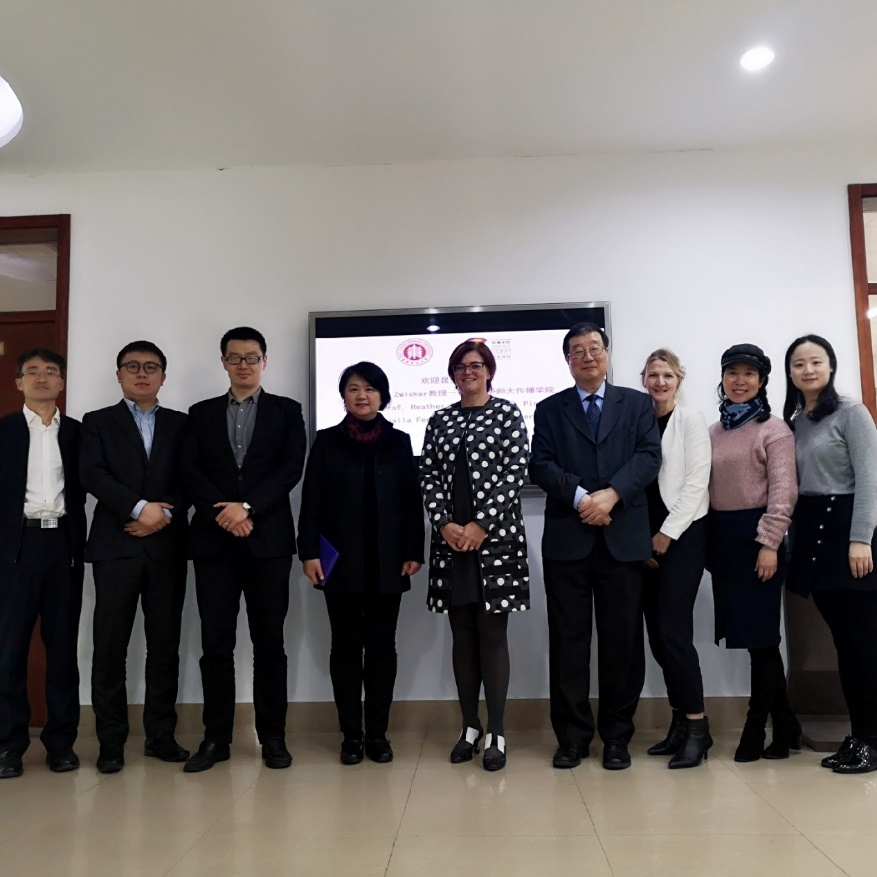 讲座结束后,昆士兰大学人文与社会科学院院长Heather Zwicker教授、人文与社会科学院国际发展经理Majella Ferguson、昆士兰大学语言与文化学院讲座教授、孔子学院外方院长陈平教授、昆士兰大学上海办事处工作人员,与ag亚游 院长吕新雨教授、副院长陈虹教授、路鹏程副教授以及ag亚游 外事秘书吉思琪老师在ag亚游 会议室举行了午餐座谈会。