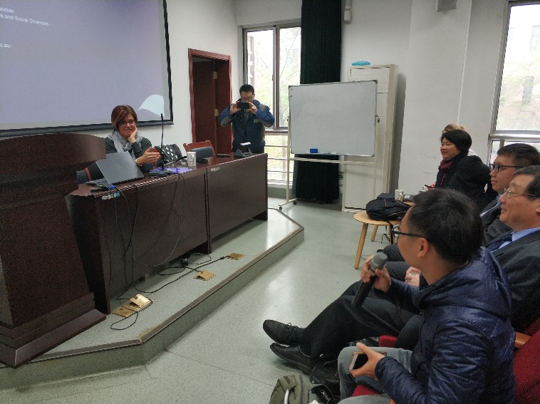 双方在座谈会上还就未来在更多学术领域开展合作进行了初步的协商交流。吕院长谈到,我院将在下周举办第五届思勉人文思想节,在思想节中会开展人工智能时代人文与科技跨学科对话工作坊,以此来进一步探讨人工智能在新闻传播领域的相关问题。Heather Zwicker院长对以“微软小冰”为代表的人工智能机器人的研究表示出了强烈的兴趣,并同陈虹教授现场就“微软小冰”机器人的相关内容进行了沟通。针对今年10月份我院将举办国际数字劳工学术会议, Heather Zwicker院长表示昆士兰大学在该领域也开展了相关的研究活动,双方院校可以尝试开展合作工作坊,以此来加深彼此之间更深层次的学术交流。