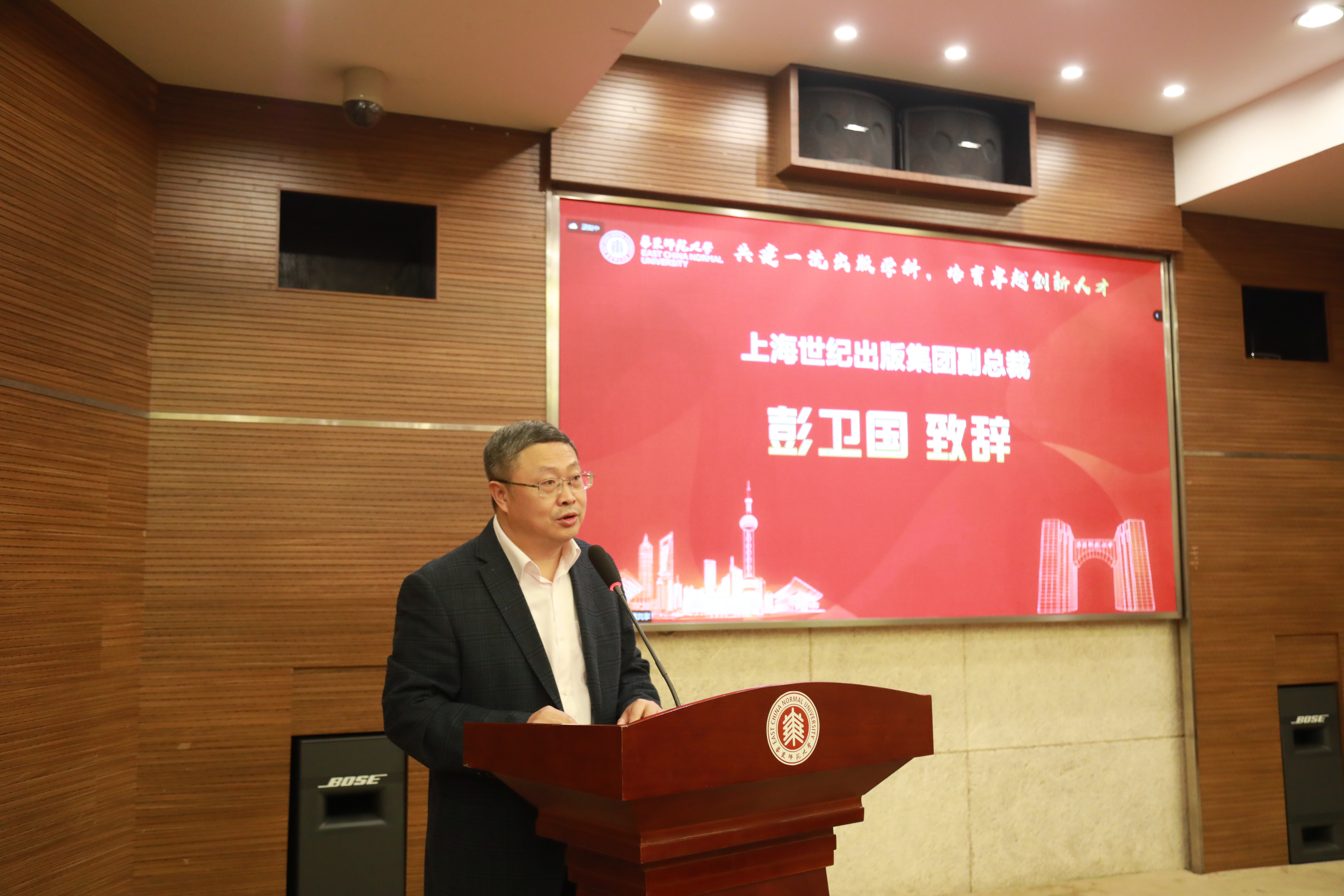 彭卫国代表上海世纪出版集团对青年论坛的举办表示热烈祝贺。他指出,上海世纪出版集团作为国内最具影响力的文化生产和内容提供企业之一,将立足于建设社会主义现代化文化强国和社会主义国际文化大都市的当下,积极响应中宣部的决策部署,将世纪出版集团优良的出版传统、完备的产业体系和丰富的人才资源与综合性一流大学的优质教学、科研相结合,为华东师范大学出版学院的壮大发展和出版学科的创新探索提供全方位的服务和支持。彭卫国副总裁表示,集团将致力于在出版人才培养、出版科学研究、出版制度建设与社会服务等方面加强体制机制创新,搭建产业与学界交流的桥梁,推动出版学科和出版业良性互动、蓬勃发展,通过合作建优出版学科,打造出版人才高地,为出版强国建设作出应有贡献。