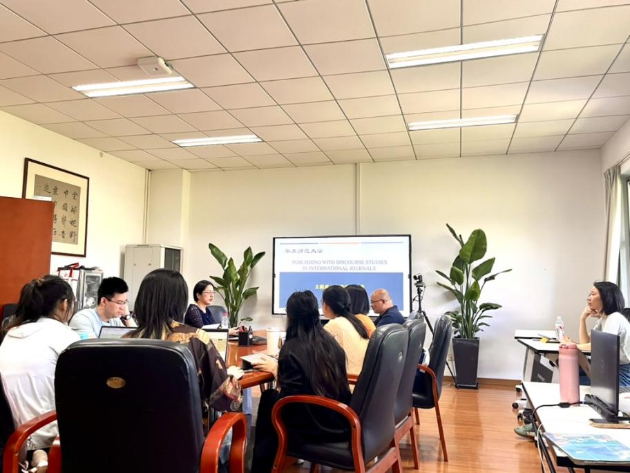 2024年5月16日下午,主题为“如何在国际期刊上发表话语研究论文——融合定量与定性的探索”的学术讲座在华东师范大学闵行校区的ag亚游 211会议室举行。本次讲座由上海师范大学外国语学院博士生导师王国凤教授主讲,ag亚游-真人ag-亚游平台 博士生导师甘莅豪教授担任主持人,十余名来自本校ag亚游 和外语学院及上海交通大学外语学院的同学在线下参与了该专题讲座。