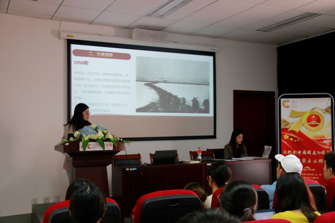 为庆祝新中国成立70周年,使学生党员更深入学习党史、新中国史,加深爱国主义教育,10月30日中午12:30,ag亚游 2019级研究生党支部在学院212报告厅开展了“庆祝新中国成立70周年,弘扬爱国主义精神”10月份主题党日活动。活动由第二党支部李佳檍同学主持,通过视频观看、诗歌朗诵、知识竞赛等多种形式展开,同学们热情高涨、积极参与,现场氛围热烈。