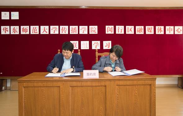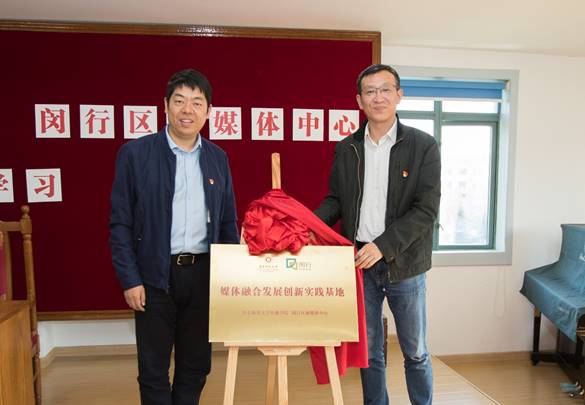 联组学习会上,双方首先进行了十九届四中全会公报的解读学习。之后,双方还签署了共建协议,学院党委书记方奇华与闵行区融媒体中心党组书记、主任茅杰共同为“媒体融合发展创新实践基地”揭牌。