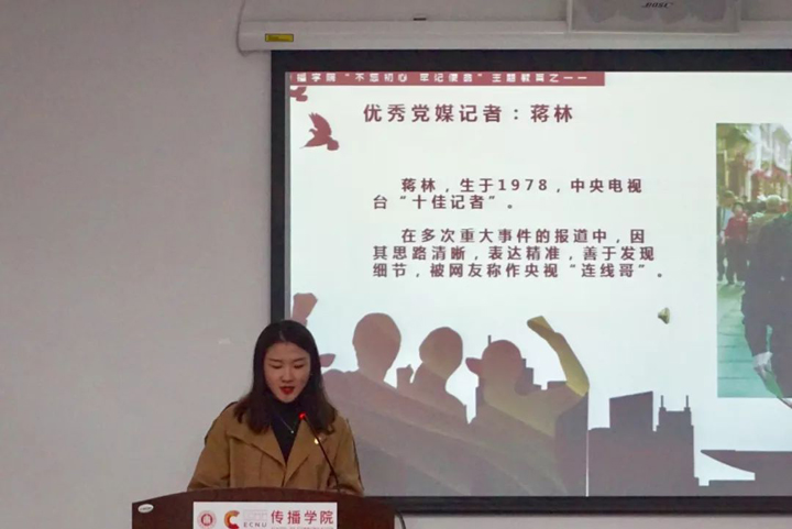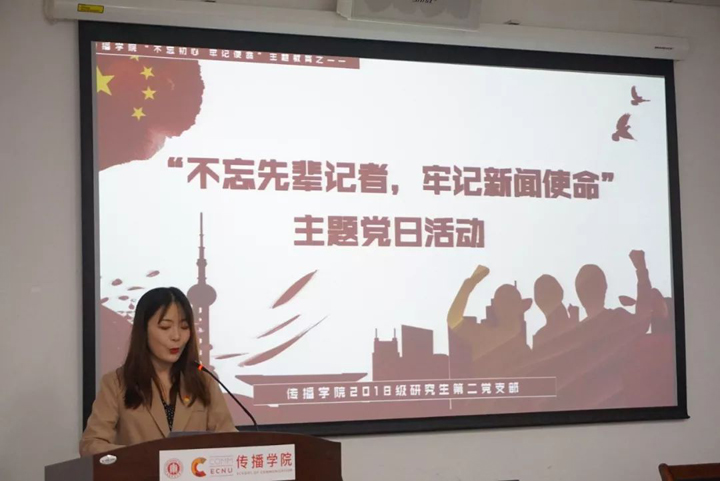 根据《中共华东师范大学委员会关于开展“不忘初心、牢记使命”主题教育的实施方案》精神和学校、学院党委的有关要求,此次活动以即将到来的ag亚游-真人ag-亚游平台 15周年院庆暨华东师范大学新传教育95周年纪念为契机,以“不忘先辈记者 牢记新闻使命”为主题。旨在通过与支部党员一起追忆先辈记者的感人故事,学习新时代记者的先进事迹,勉励支部党员坚守党媒初心,传承党媒基因,勇担时代使命。