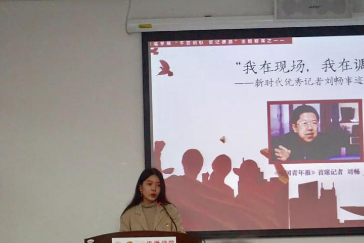 在传承环节,由杨宁、刘欣雨同志为大家讲述新时代优秀党媒记者蒋林和刘畅的优秀事迹。他们始终秉持新闻记者的信念,不畏艰险和劳苦,深入一线进行采访报道,为党和人民的事业发声。如今我们回眸望去,总结、回顾他们的精神和贡献,能够给当下新闻学子以启发和借鉴。这种总结和回顾,不是一种应景的运作,而是新时期的一种反思和期盼。丹心一片留青史,浩气长存谱新篇。作为新时代的新闻记者,应从优秀的先辈记者身上学习优秀的品质,传承其红色基因,在新时代的新闻传播事业中贡献自己的力量。