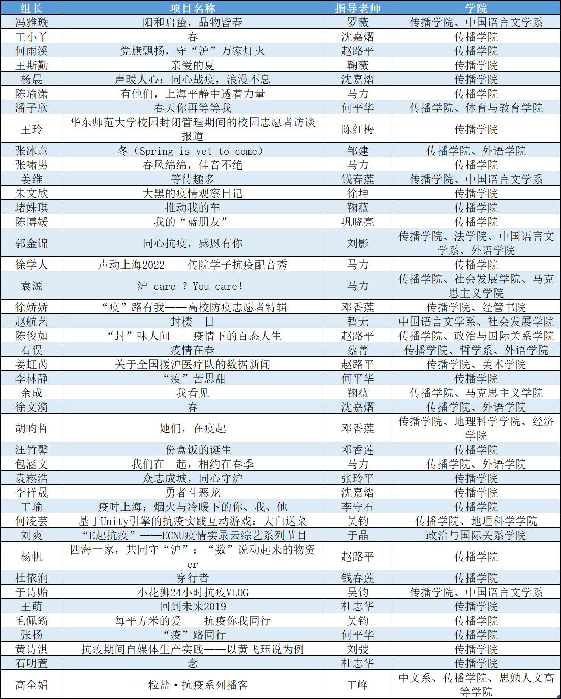 ag亚游-真人ag-亚游平台 “抗疫实践与传播”项目的评审工作已结束。经专家评审,认定实践作品类立项项目42个,调查报告类立项项目23个,自选创新类立项项目7个。现将拟立项名单公示如下: