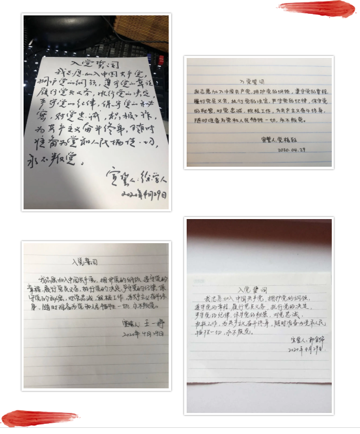 在会议的结尾,凌玉菁带领各位党员与预备党员一起手写入党誓词,并以图片的形式发送到微信群,重温入党誓词。