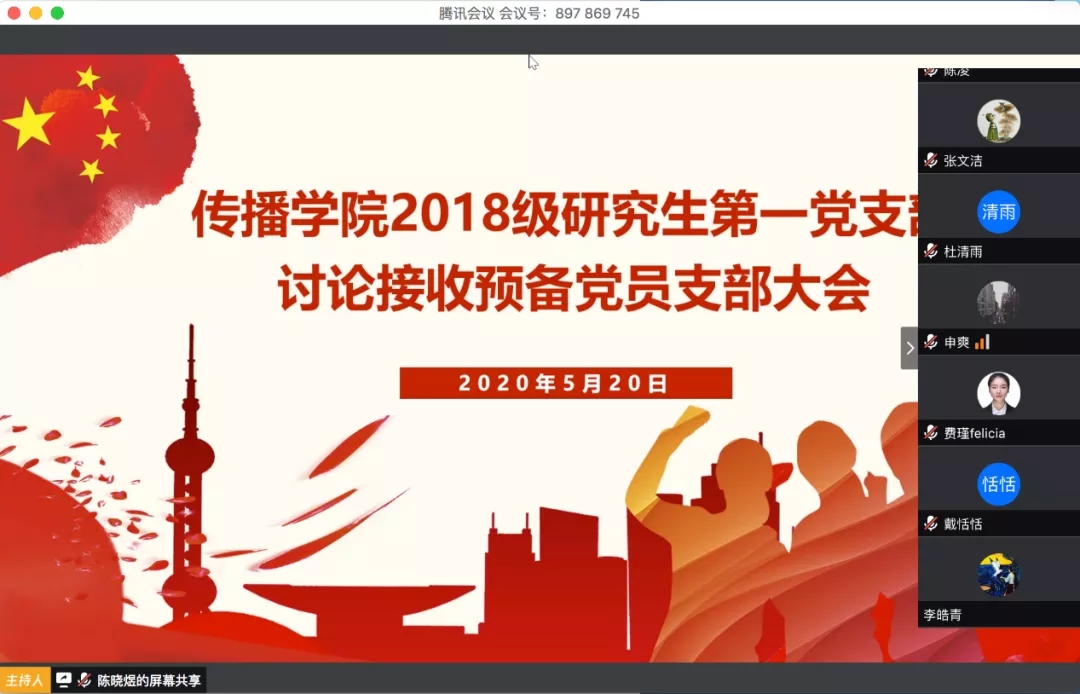 2020年5月20日19点,ag亚游 2018级研究生第一党支部讨论接收预备党员支部大会通过腾讯会议顺利召开。
