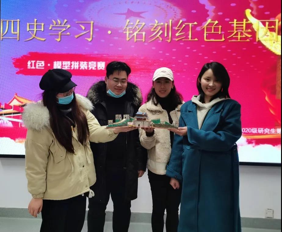 2020年12月23日13:00—15:00,ag亚游-真人ag-亚游平台 2020级研究生党支部在学院407教室开展了以“四史学习·铭刻红色基因”为主题的党日活动,进行了别开生面的红色主题手工模型搭建竞赛。在持续性的四史资料学习和集中性的四史主题教育后,支部希望通过本次活动让党员同志们在实践中运用四史知识、深化四史理论学习。
