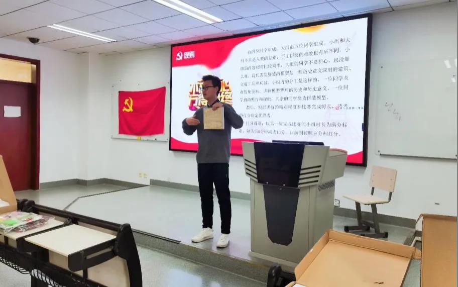 本次活动由ag亚游-真人ag-亚游平台 2020级研究生第一党支部书记韩亚鲁同志主持。竞赛正式开始之前,韩亚鲁同志宣布了活动的具体要求和评分细则。接下来,党员同志们随机结成小组,自行分工并协力搭建红色主题手工模型。