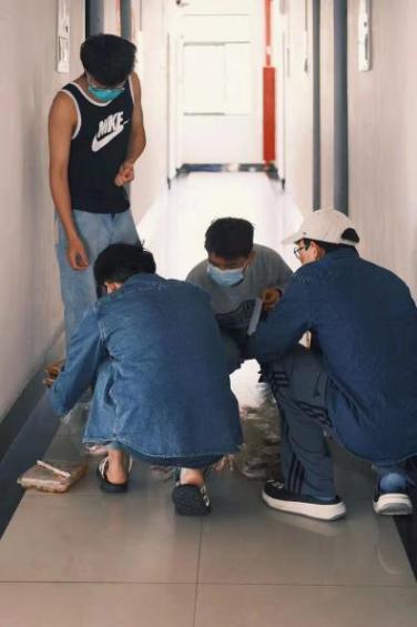 因为经常协助后勤人员和宿管阿姨完成工作,这几天我看到了他们辛勤忙碌的身影,每一天热乎可口的三餐都由他们为我们送来,尤其是近期时有下雨,他们撑着伞为我们送餐的场景更是令人动容。