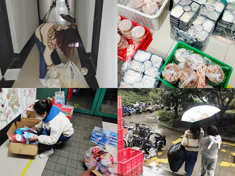 通过参加八号楼的后勤志愿者工作,我体会到了送去餐食时同学们给予的温暖,也见证了学校后勤工作人员、宿管阿姨和楼层负责志愿者们为同学们水果、日用、零食等物资各方协调的不易。
