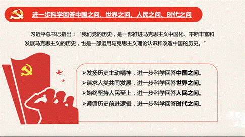 接着,郭昊雯从四个方面介绍了该著作的重点内容和学习方法,带领大家学习如何进一步科学回答中国之问、世界之问、人民之问、时代之问:发扬历史主动精神,进一步科学回答中国之问;谋求人类共同发展,进一步科学回答世界之问;始终坚持人民至上,进一步科学回答人民之问;遵循历史前进逻辑,进一步科学回答时代之问。