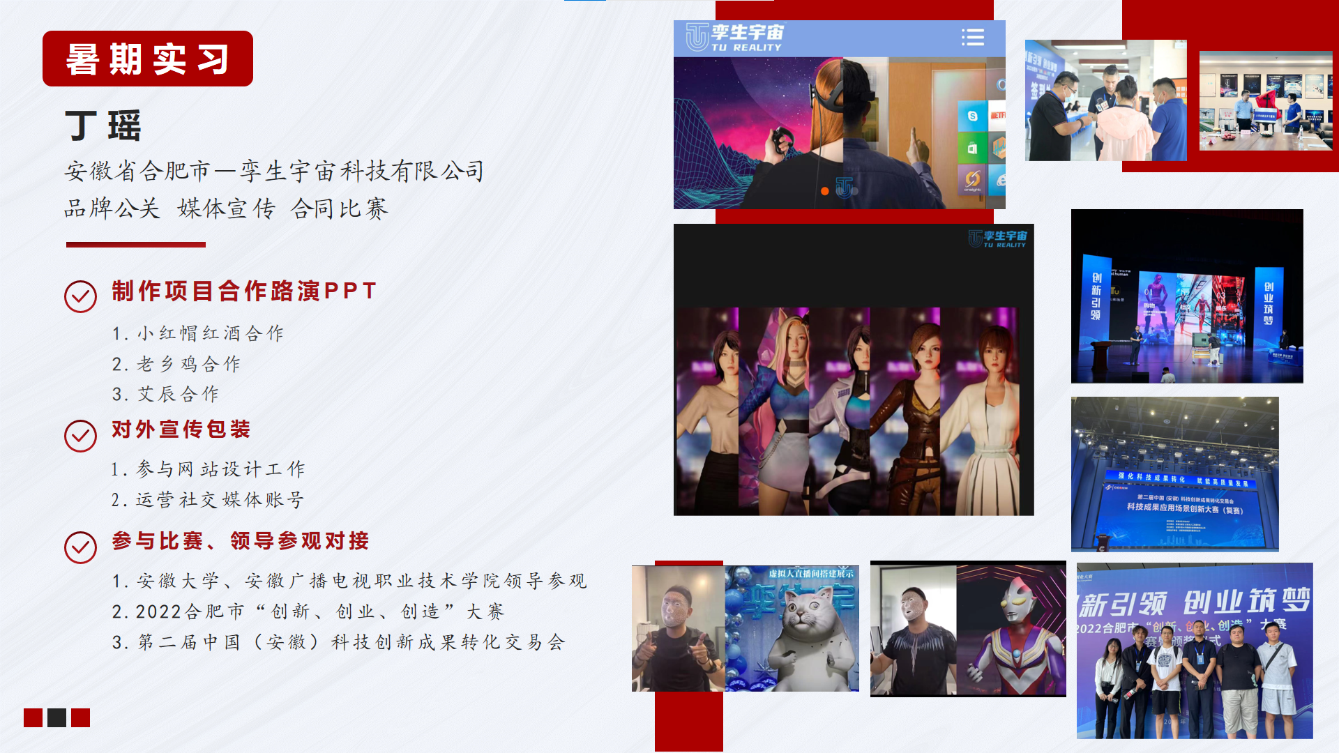 此外,不少支部党员也在不同行业的暑期实习中练就过硬本领。孙新宇、于晴、郭豪宇深耕专业特长,在传媒岗位进行技能实践,将理论与实践融会贯通;朱颖、黄泷莹、葛雯欣前往互联网大厂,深刻体会互联网已成为数字时代的“国之重器”;陈思琦、雷悠然、毕平平探索科技、教育领域,对未来职业方向也有了进一步思考。