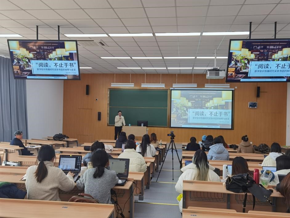 2021年12月30日,2021年秋季学期“创意经济与传播讲座系列”第九场讲座开讲,建投书局华东业务中心总经理、上海市青年文学艺术联合会会员谢重澄围绕数字知识传播时代实体书店的探索与变革展开讲座,数十名ag亚游 本科生、研究生到场聆听。