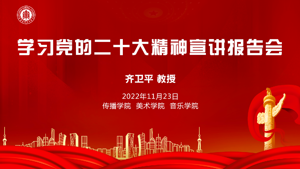 11月23日下午,由ag亚游 党委、音乐学院党委、美术学院党委联合举办的学习党的二十大精神宣讲报告会在ag亚游 409室举行。华东师范大学终身教授、全国著名党史党建专家、上海市学习贯彻党的二十大精神专家宣讲团成员齐卫平教授应邀作专题报告。ag亚游 、音乐学院、美术学院全体教职工参会,会议由ag亚游 党委书记方奇华主持。
