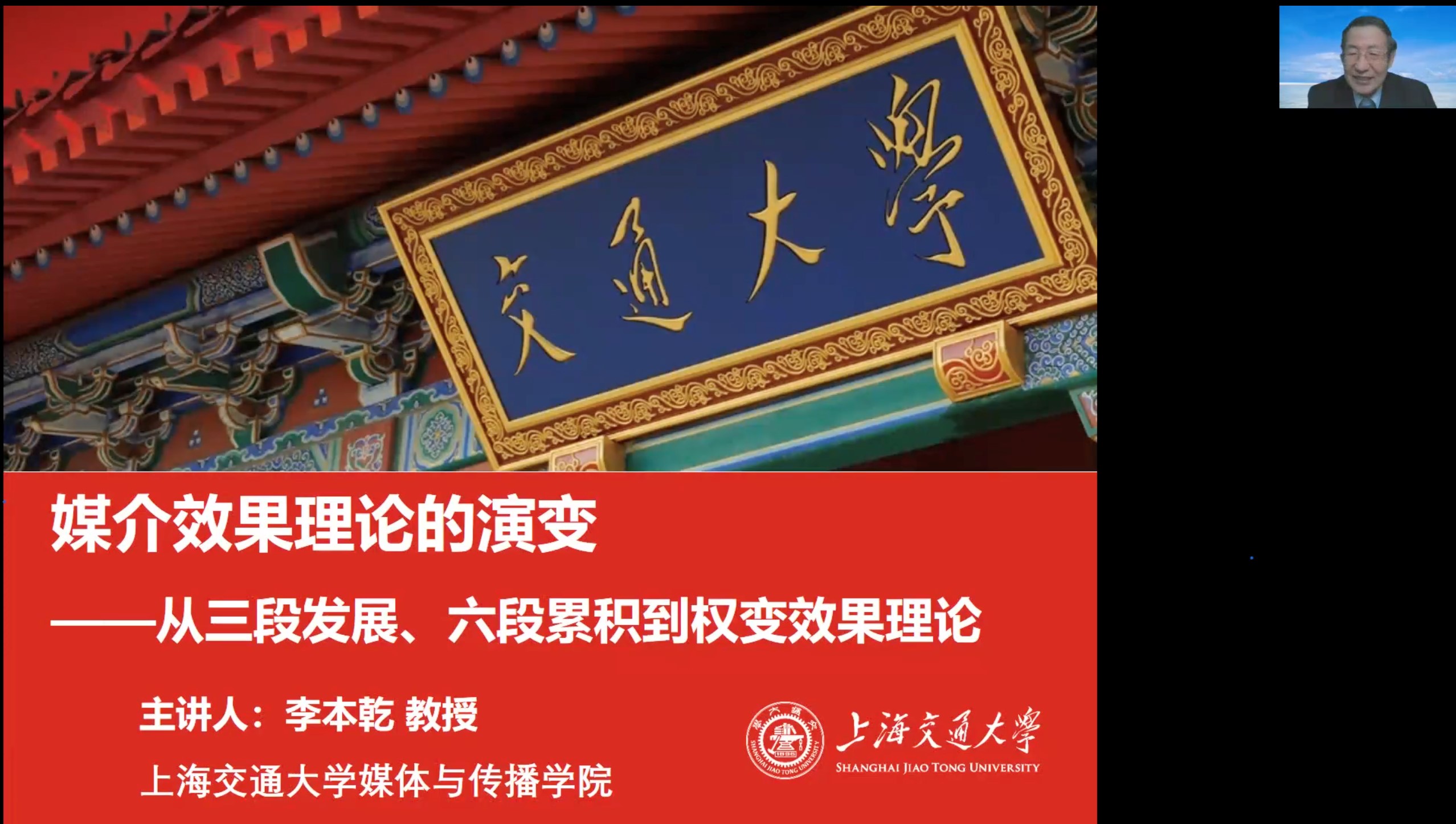 4月14日下午两点,华东师范大学人文社会科学“知名学者学术讲座”在腾讯会议平台举行。本场讲座由上海交通大学媒体与ag亚游 院长李本乾教授主讲,他以“媒介效果理论的演变——从三段发展、六段累积效果到权变效果理论“为主题,通过对不同阶段媒介效果理论的梳理与研判,为不断演化和变迁的传播格局、媒介生态和传媒环境提供了新的解读视角。ag亚游 副院长陈虹教授主持了本场讲座,三百余位听众在线参与。