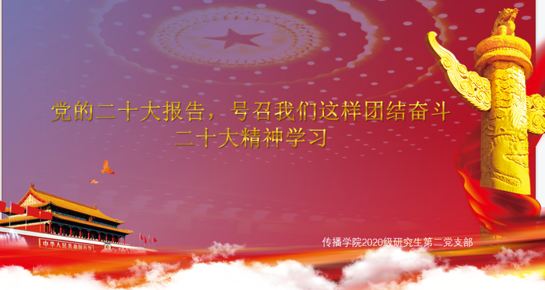 2022年12月13日中午12:00,ag亚游 2020级研究生第二党支部组织支部成员于线上开展了“党的二十大报告,号召我们这样团结奋斗”主题党日活动,对党的二十大报告精神进行了集中学习与感悟分享。