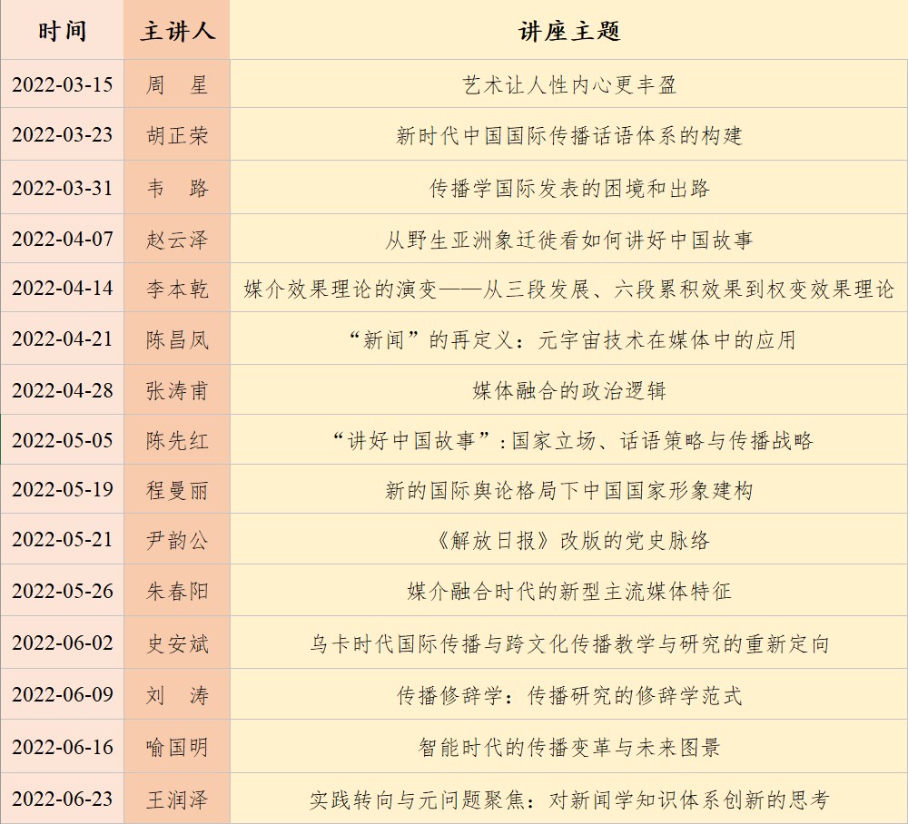 本学期举行的十五场“知名学者学术讲座”主题多元,涵盖国际传播、智能传播与媒介融合、新闻传播研究新范式、中国新闻史、艺术与人性等多个领域,皆为主讲教授的最新学术成果。这些讲座并非仅是既成知识的传递,而是更注重梳理问题意识的生成过程。通过讲授,各位教授的学术视野、思考路径与研究方法传与听众,潜移默化的提升了听讲人的学术素养。正如ag亚游 研究生袁崧浩所言,“主讲教授们讲述的思考方式与技巧,提升了我发现问题、解决问题的能力”。故此,每场讲座的听者皆达三百之众,且深受好评。