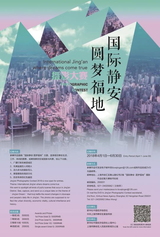 邮寄地址:上海市徐汇区衡山路62号2楼“国际静安 圆梦福地”摄影作品征集大赛秘书处收