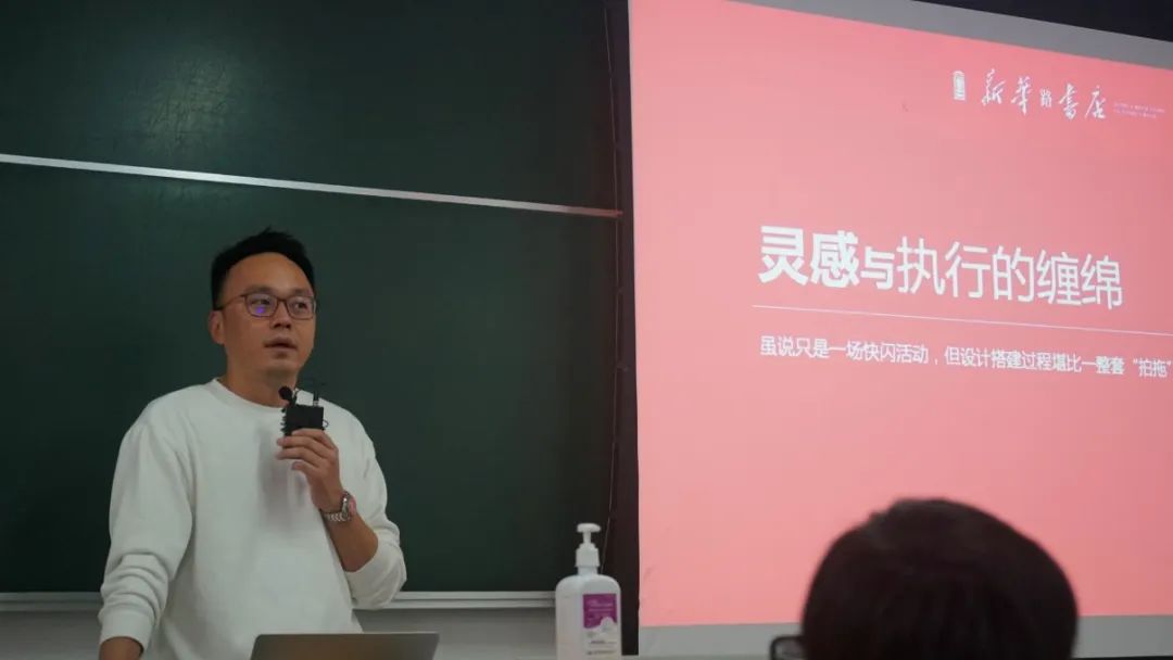 吴成泽老师首先从自己多年来面试创意人员的经历引入。对广告创意饱含热情的应聘者众,其中不乏其他行业的从业者,以及高分子化学、法律等不同专业背景的人才,而他们对于好的创意、好的广告案例的看法却往往趋同;在这样的背景下,吴成泽老师引入了insight这一概念,并以“新华路电话亭书店”这一案例为例,辅助我们理解创意落地的过程。