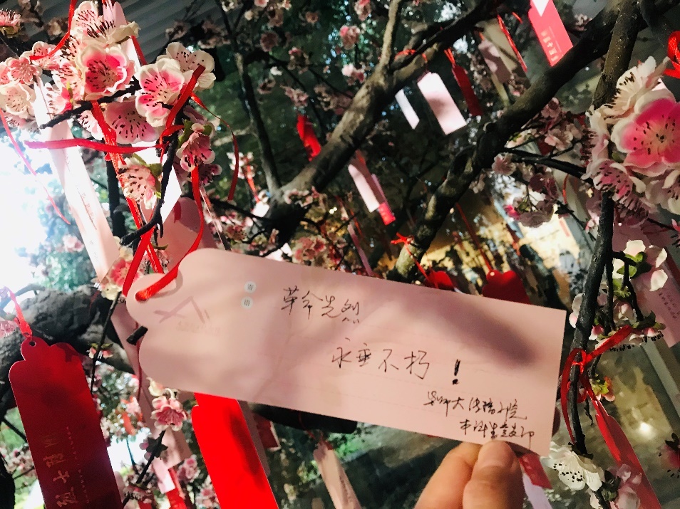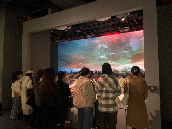 其中,多媒体雕塑剧场给2019级编辑出版专业的强歆惟同志留下深刻印象。利用全息技术投影,龙华二十四烈士由生而死、死而永生的英雄事迹以现代舞的形式生动再现。“当年仁人志士奋不顾身投入革命,他们的一腔热血穿过百年风雪又一次点燃了我。无论是早已闻名遐迩的大人物,还是默默无闻的小角色,都是值得我们永远铭记的英雄,都是为挽救我国的民族危亡奉献一切的战士。向他们致以最崇高的敬意!”